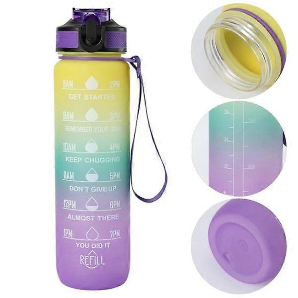 Features: 1. Functional Design: Motivational time markers. It is transparent and rated for a daily water plan 2. Safe Material: High quality and safe, 100% BPA free, odorless, healthy, suitable for your daily water drinking or mountain climbing, picnic, travel, hiking, camping 3. PORTABLE AND IDEAL GIFT: A water bottle with a humanized design cord, it is also lightweight, yet durable, available in a variety of bright colors, perfect for your loved ones, helping them stay hydrated and healthy. Material: Gradient Plastic Capacity: 1000ml Color: rainbow gradient Package Includes: Water Bottle x 1 Note: 1. Due to manual measurement, 1-3 cm error is allowed. Make sure you do not mind before you bid. 2. Due to the difference between different monitors, the picture may not reflect the actual color of the item. Thanks!