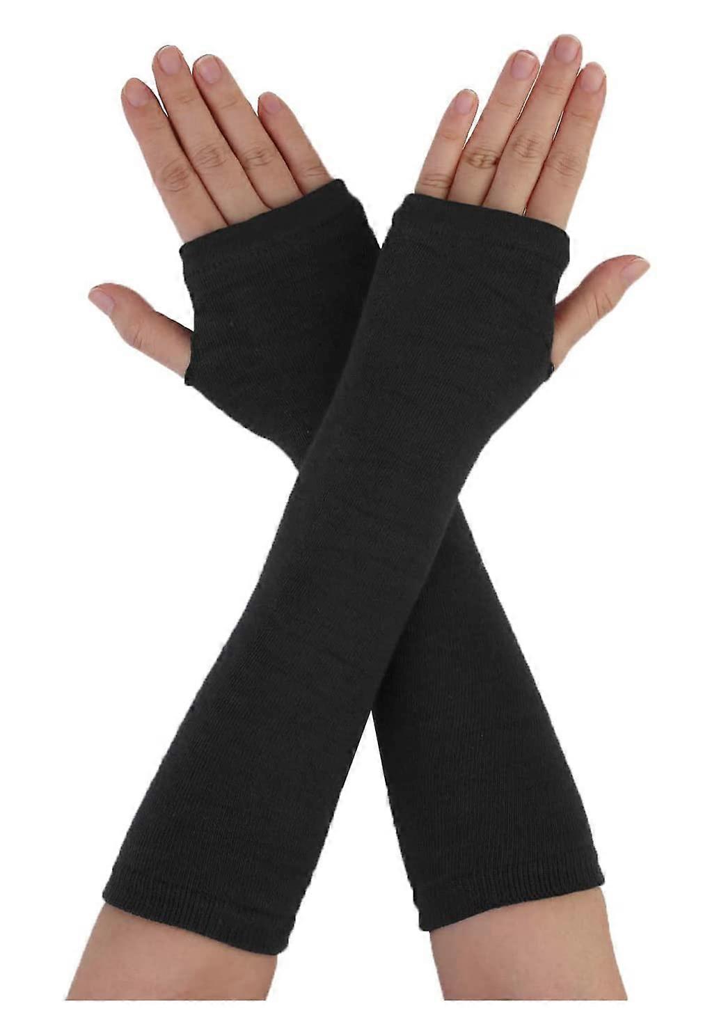 Women's Fingerless Gloves, Elastic Knitted Winter Arm Warmers Thumb Hole Gloves