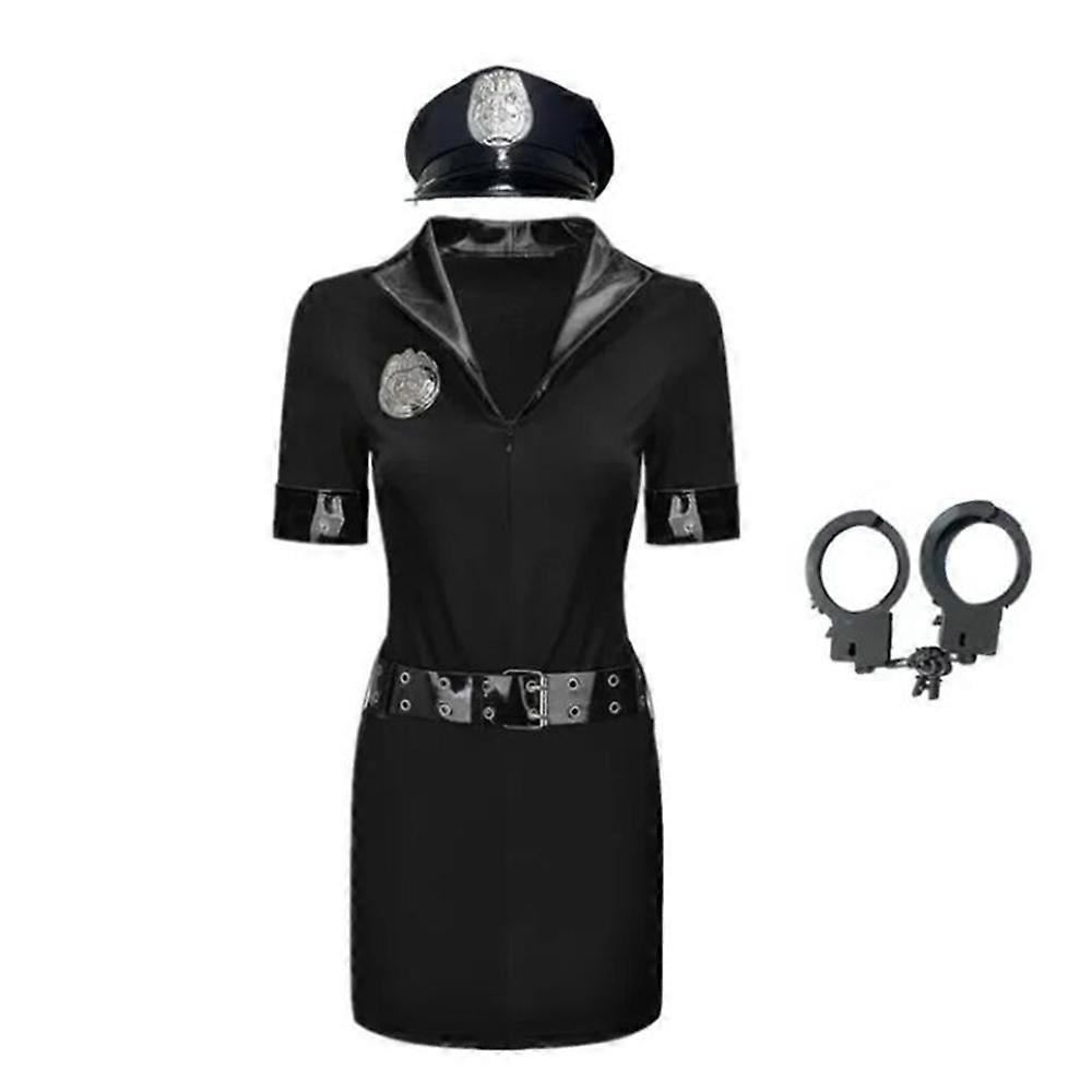 Women Sexy Black Police Costume Adult Officer Exotic Costumes Erotic Clubwear Halloween Cop Cosplay Party Hot Uniform Dress