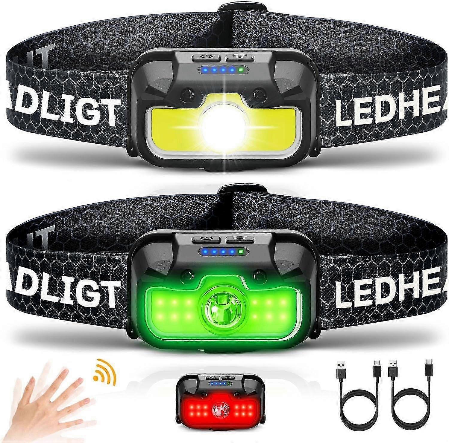 Rechargeable Headlamp 2-Pack, 1300 Lumen Motion Sensor, Type-C, 90° Tilt