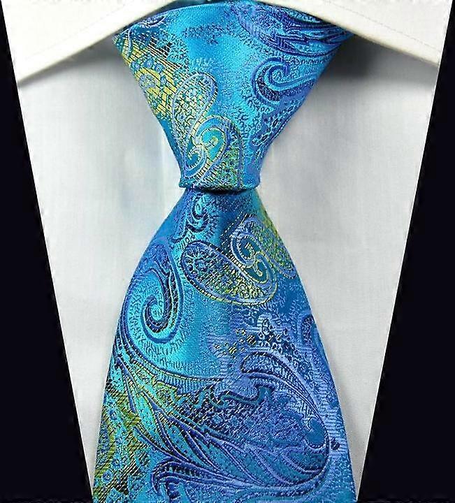 Hot Classic Paisleys Blue Gold JACQUARD WOVEN 100% Silk Men's Tie Necktie