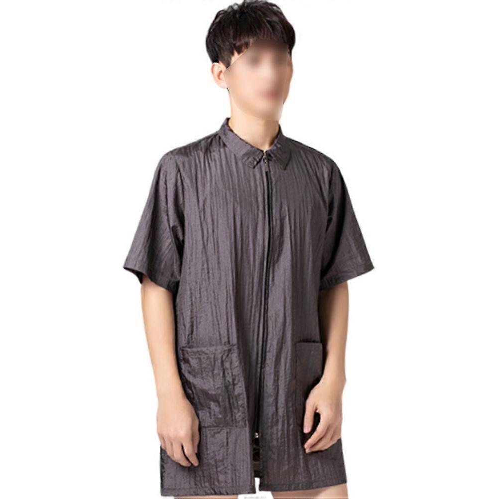 This is a hair dye clothes, made of nylon material. they are durable and lightweight. the simple design is very practical. perfect for women or men. suitable for hair dye store, restaurant and so on. zipper design is very practical, you can wear it easily. Features - Color: Grey - Material: Nylon - Size: About Size : 77cm(length); 47cm(shoulder width); 122cm(bust); 30cm(short sleeve); 150-165cm(recommended height); 50-70kg(recommended weight) Size L: 80cm(length); 48cm(shoulder width); 130cm(bust); 30.5cm(short sleeve); 170-175cm(recommended height); 70-85kg(recommended weight) Size XL: 83cm(length); 50cm(shoulder width); 136cm(bust); 31cm(short sleeve); 175-185cm(recommended height); 85-100kg(recommended weight) - Made of , durable for long time use. - It is soft, waterproof, you can feel very comfortable. - You can clean it easily. - Turn-down collar design, your wear will be fashionabe and simple. - Pocket design is very practical, you can store your things easily. Package list: 3 pcs x 1 z clothes