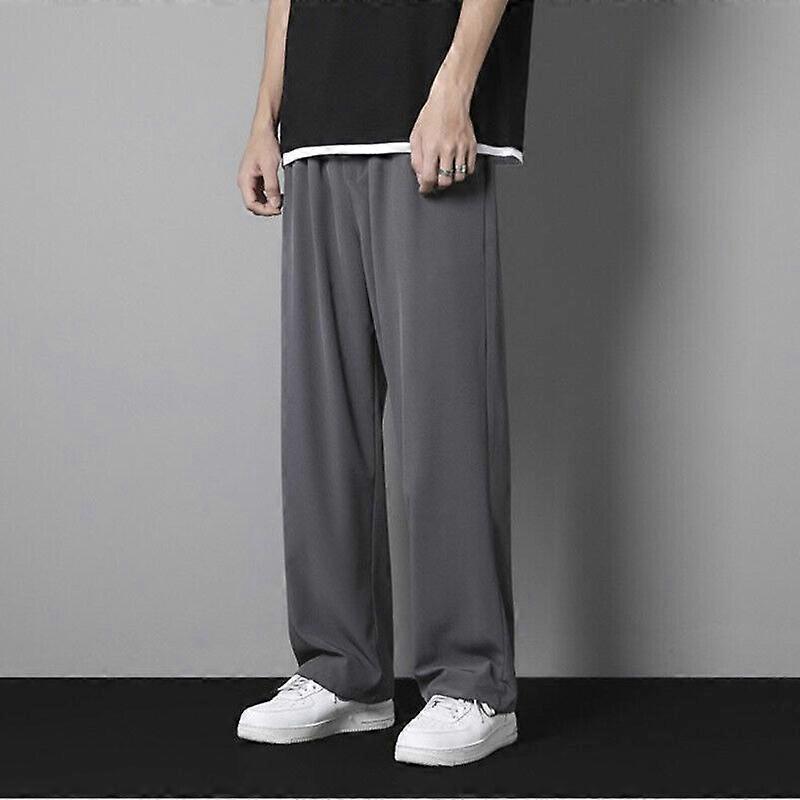 Men Loose Wide Leg Straight Pants Trousers Streetwear Bottoms Summer Thin Drape