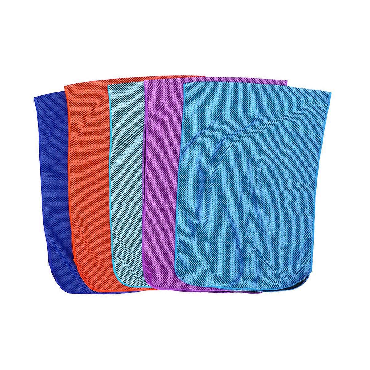 Adopting quality material, the towel is super thin, breathable and absorbent. It can absorb the sweat on your body quickly and comfortably. Healthy and safe cooling fabric can make you feel cool all the time even when you are running. Great choice for you to go camping, swimming, doing gym fitness, and yoga, ect. Features - Colour: Dark Blue+Blue+Purple+Orange+Sky-blue - Material: Polyester. - Size: About 90x30x0.5cm - Made of quality material, quick dry and , healthy and safe. - Super thin, breathable and absorbent, used as neckerchief and facecloth. - Dry and cool the skin of your face instantly as long as the towel is wet. - Perfect for camping, swimming, gym exercises, yoga, golf, running, hiking, etc. - 3D weaving method, the towel is smooth and won’t stick to your body. Package list: 10 x Sports Towels