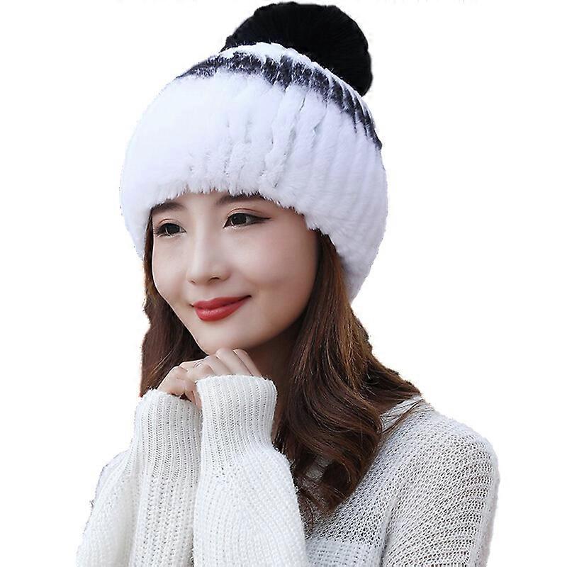 Real Rex Rabbit Fur Hats For Women Winter Warm Beanie Cap With Fox Fur pom pom