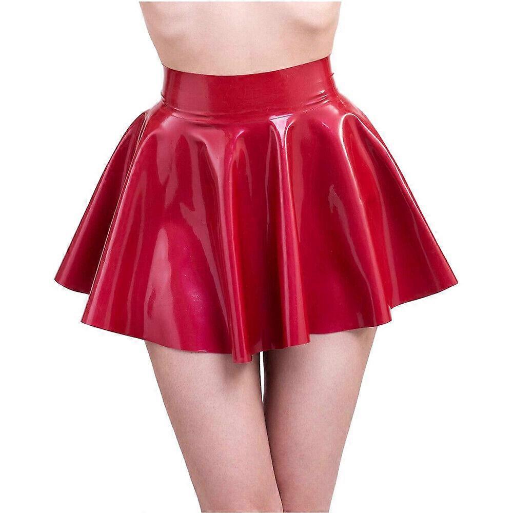 Ladies Red Latex Rubber Pleated Skirt Rubber Catsuit Bodysuit Cosplay Halloween
