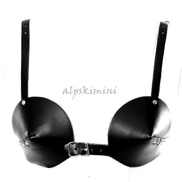 Women Sexy Black Real Leather Bra Bullet Buckled Adjustable Body Breast Harness