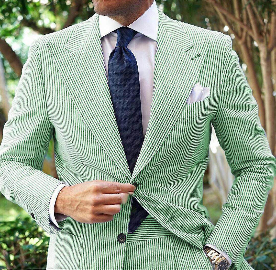 Seersucker Men Suits Wide Peak Lapel Blazer Wedding Beach Summer Tuxedos Jacket