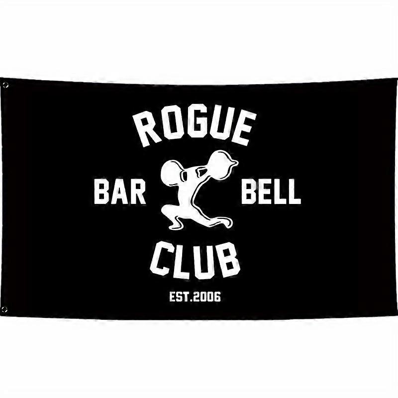 Rogue Barbell Club Motivational Gym Flag Black Polyester Outdoor Banner with Elephant Graphic White Text Durable Weather