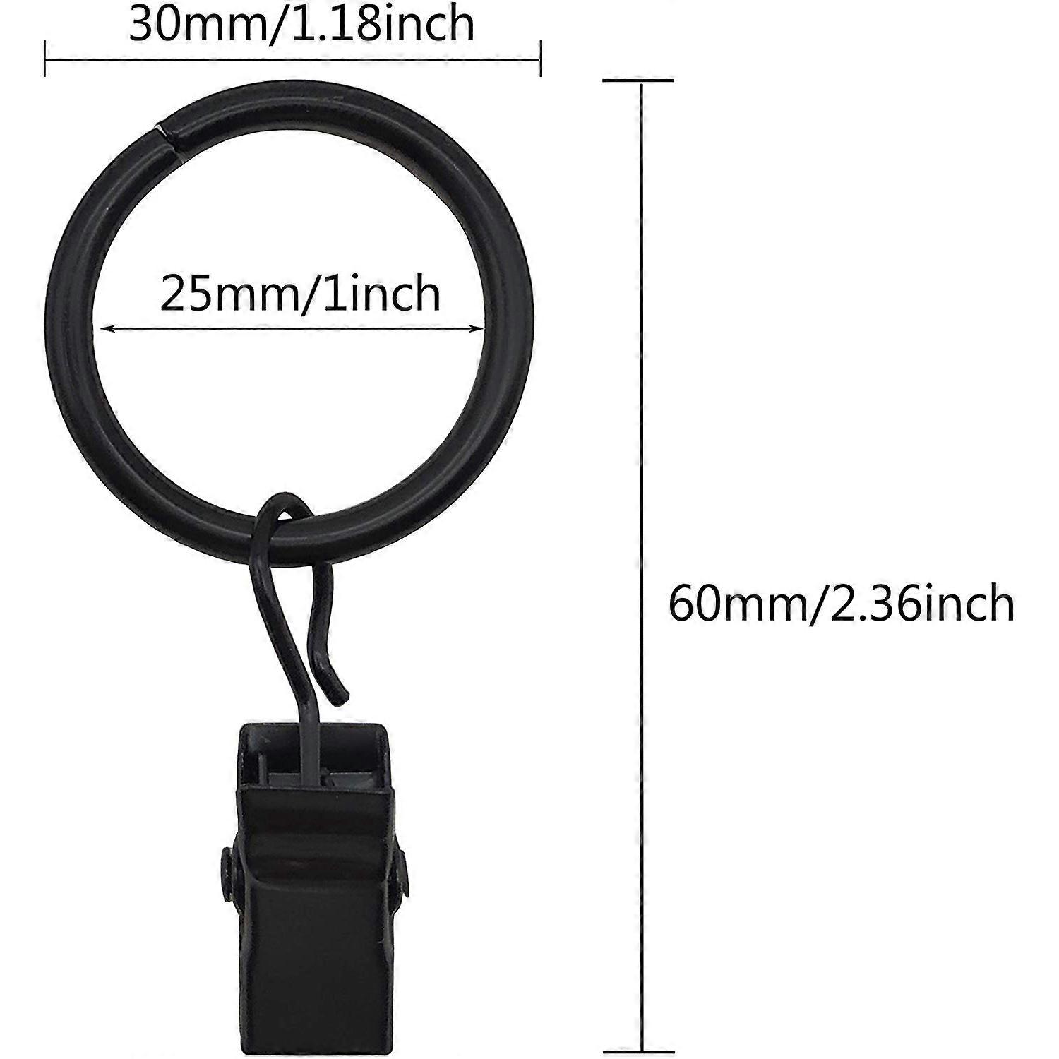 AD30-42 Packs of Curtain Ring, with Clips, Decorative Curtains, Rust, Retro, 1 Inch, Inner Diameter, Black