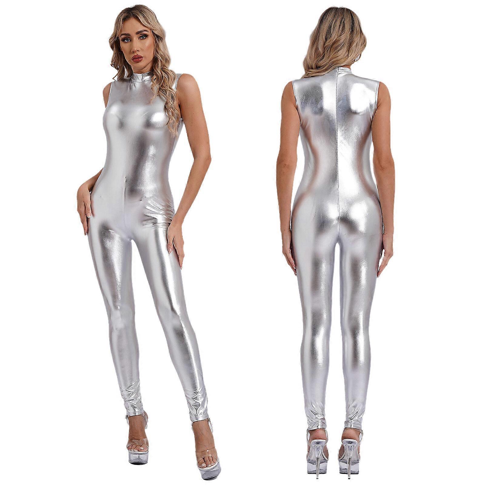 US Womens Metallic Shiny Sleeveless Gymnastics Dance Jumpsuit Unitards Costume