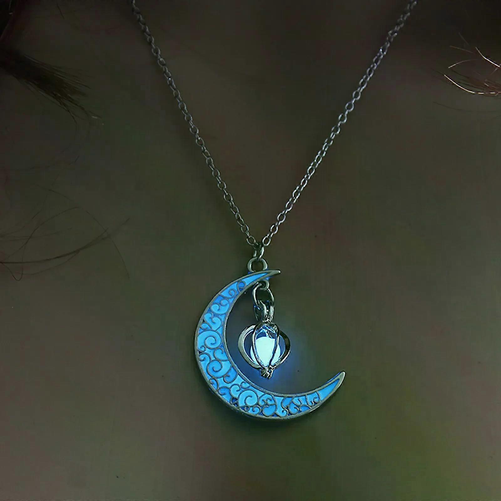 Womens Teen Girls Luminous Moon Necklace Moon Pendants Chain Choker Glow in The Dark Necklace Jewellery Gifts Ожерелье