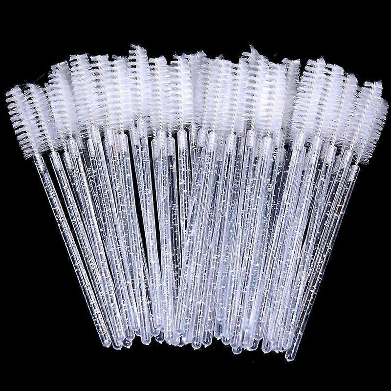 Summer Disposable Crystal Eyelash Brushes, 50pcs/set Travel Eye Makeup Tools, Lash Brush, Shining Handle Eyelash Spoolie Brush, Valentine's