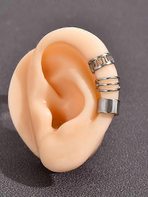 6pcs/set Simple Multi-layer Hollow out C-type Earrings, Stainless Steel Non Pierced Ear Bone Clip, Elegant All-match Fashion Accessories fo