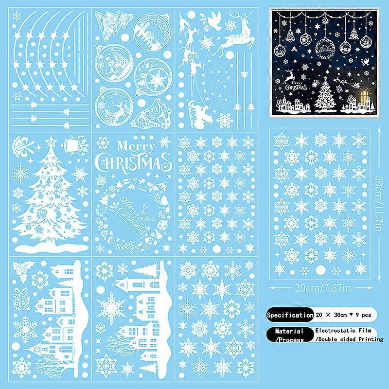9pcs Snowflake Christmas Window Stickers Reindeer New Year Decal Wall Sticker White Christmas Electrostatic Stickers Decorations