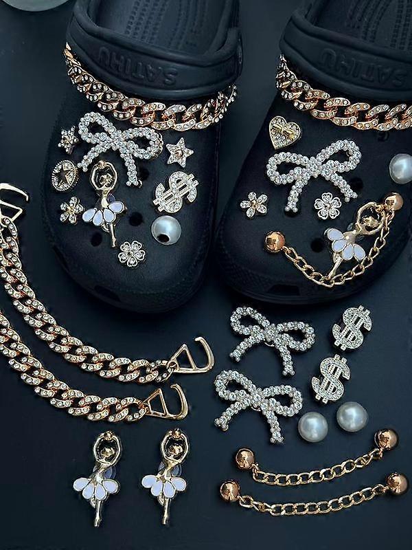 Elegant 24-Piece Stud Shoe Set with Pearl Bowknots, Ballerina Design & Chains, Cute Decorative Accessories for Shoes