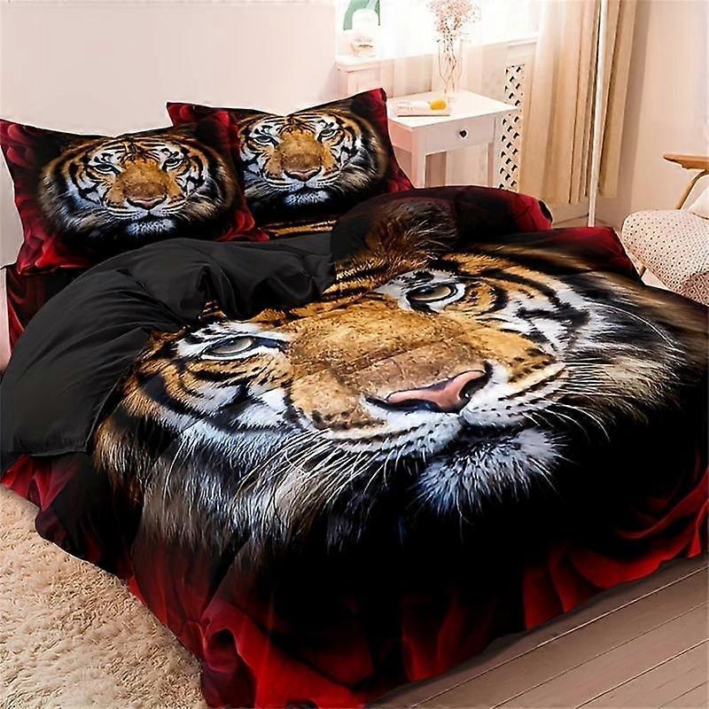 Breathable Tiger Printed Bedding Set, Including Duvet Cover And Pillowcase Without Filler, Halloween Decor Bedding Supplies For Home Bedroom