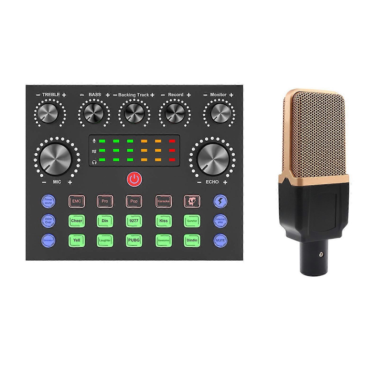 V8S Live Sound Card Sound Mixer Podcast Karaoke Home Studio Record Professional Soundcard Mic Mixer Voice Changer Multicolor