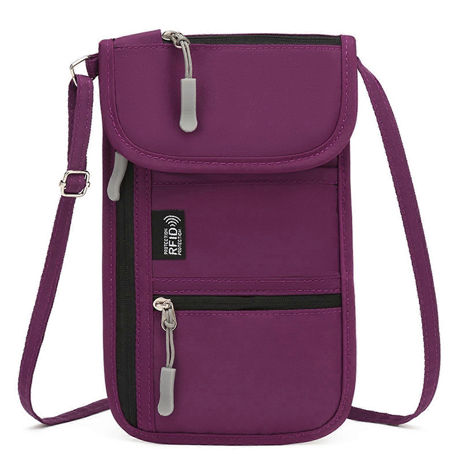 Secure Large Capacity Passport Holder Fashion Blocking Passport Holder Practical Oxford Neck Wallet Anti Theft Design Purple