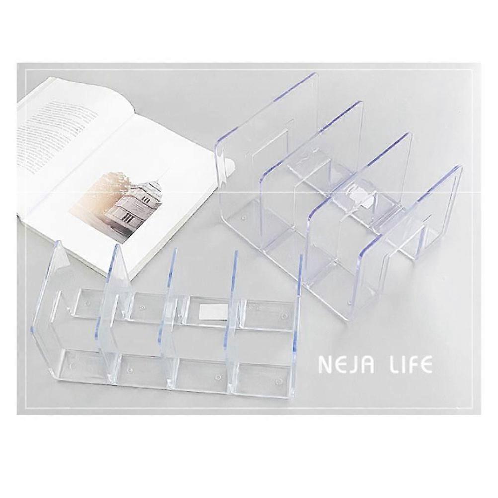 Acrylic Bookends Transparent Bookshelf for Home Use 3 Grid Clear Book Stand
