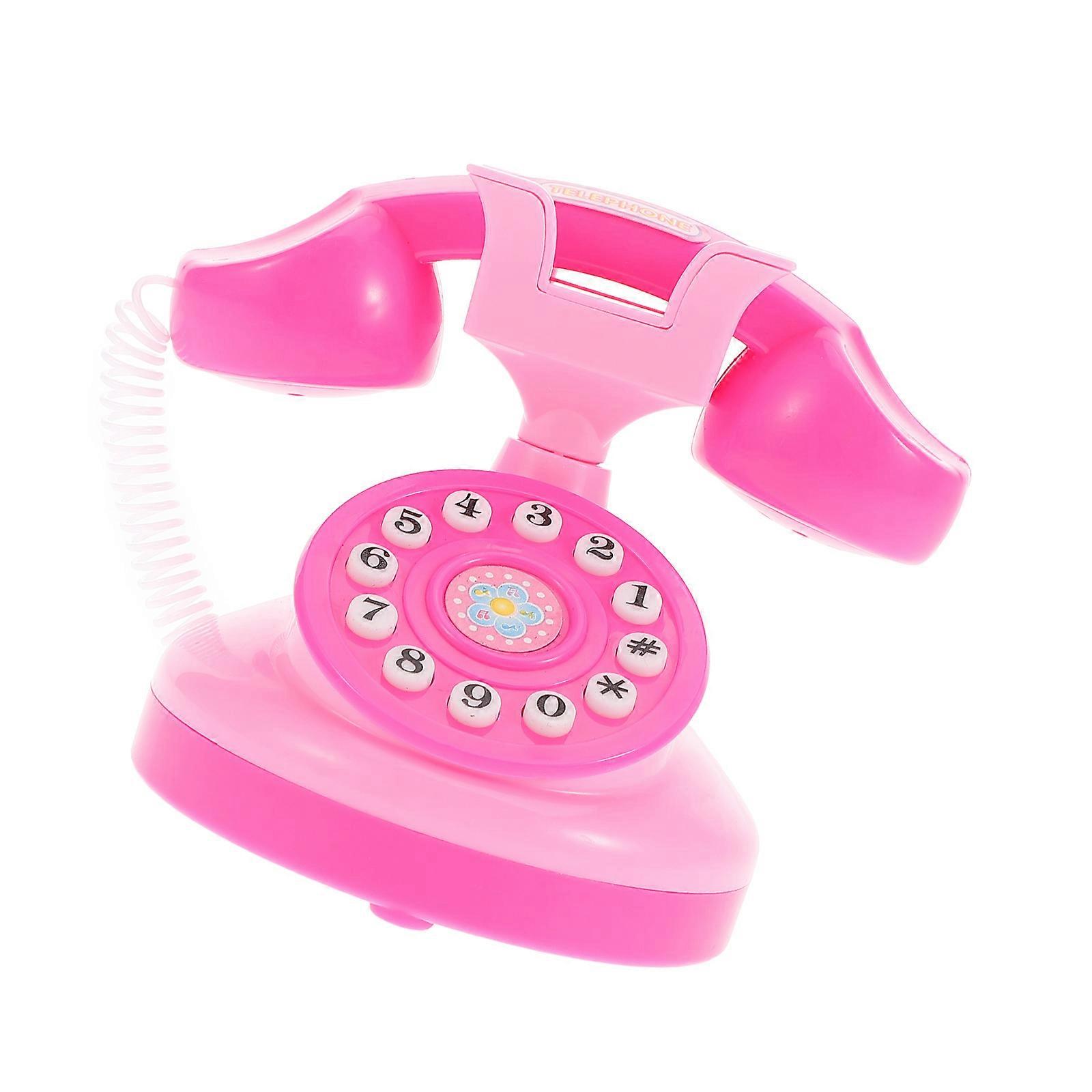 Plastic Telephone Toy Chatter Phone Toy Children Pretend Play Phone Rotary Phone Prop Birthday Party Favor for Kids Pink