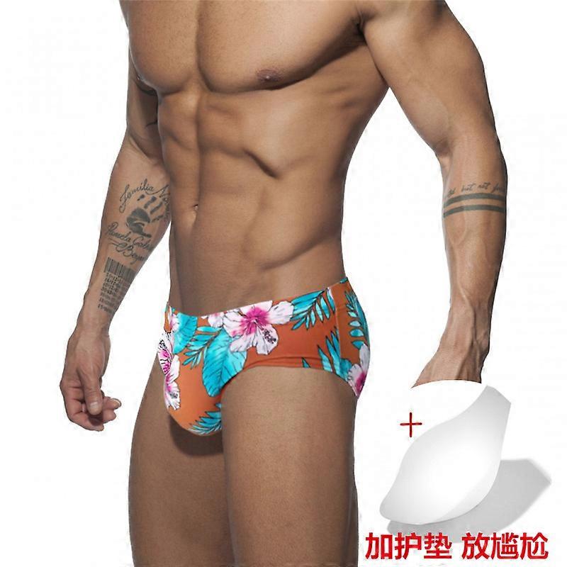 Classic Men's Swimming Trunks Triangle Printed Low Waist Cup Swimming Trunks Hot Spring Beach Swimming Shorts, Drawstrings BS405