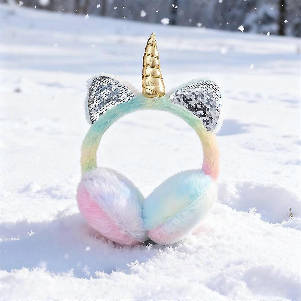Autumn and Winter Soft Plush Warm Unicorn Earmuffs, Tie Dye Sequins Cat Ear Earmuffs, Protect Ears From Cold,Christmas Gifts