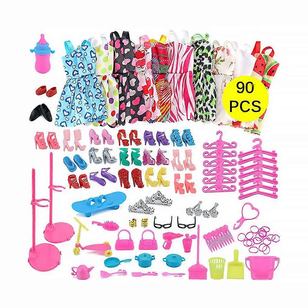 90pack/lot Toy Clothes Dresses For Dolls And Fashion Clothes Accessories Fashion Clothes Dresses