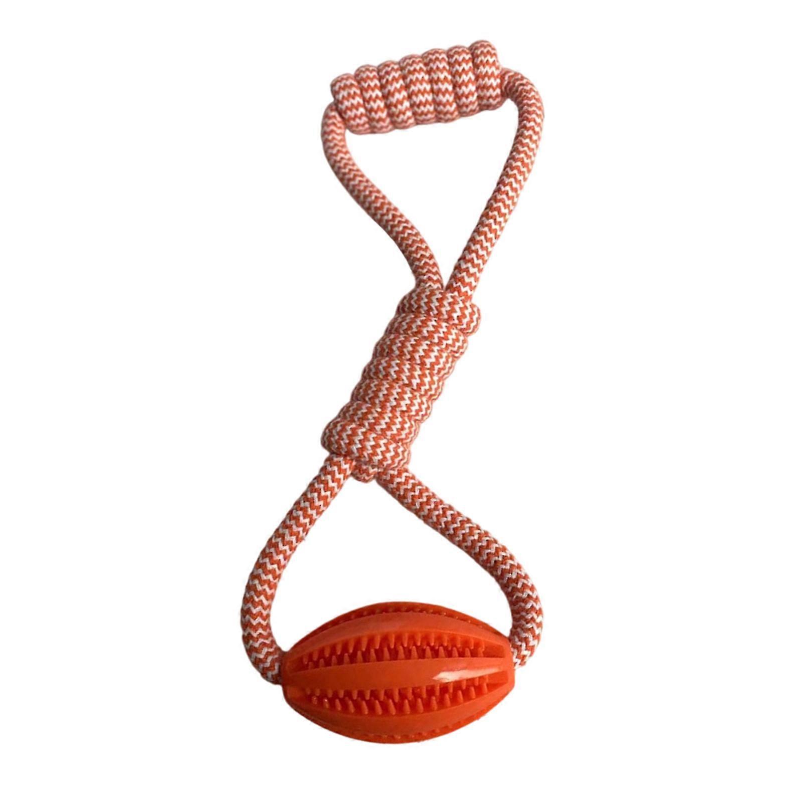 Cotton Rope Pet Dog Chewing Toy with Ball Shape Treat Dispenser Pet Dogs Teeth Cleaning Toy for Interactive Play Orange
