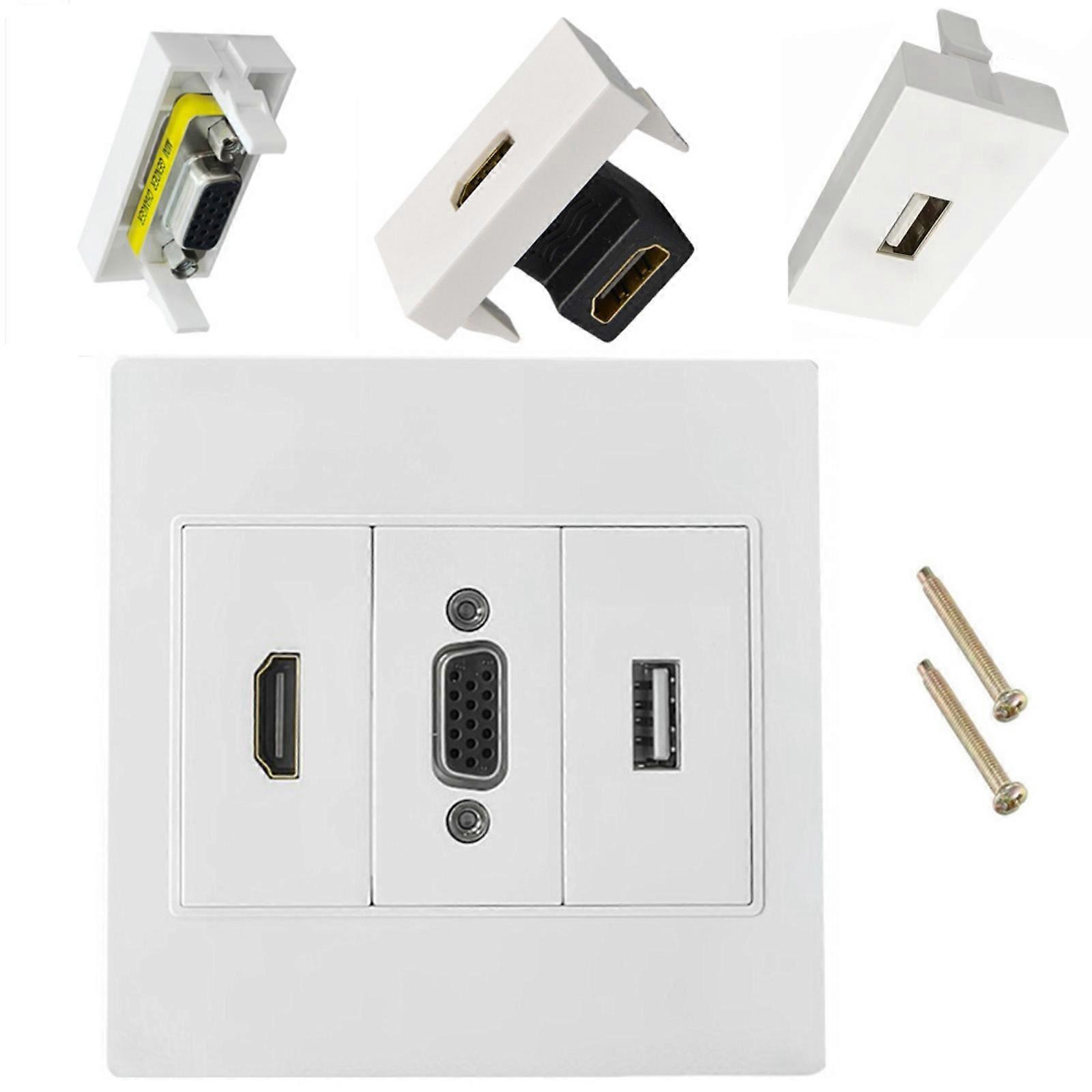 Multimedia VGA HDTV USB Wall Plate Not Required Solder Direct Connection for Home Office Wall Outlet Video Socket Multicolor