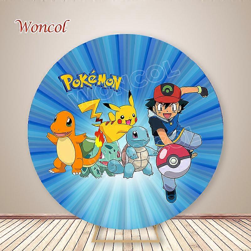 Pokemon Birthday Circle Cover Pokemon Round Backdrop Pikachu Squirtle Pokeball Cylinder Cover Baby Shower Decor Photo Prop