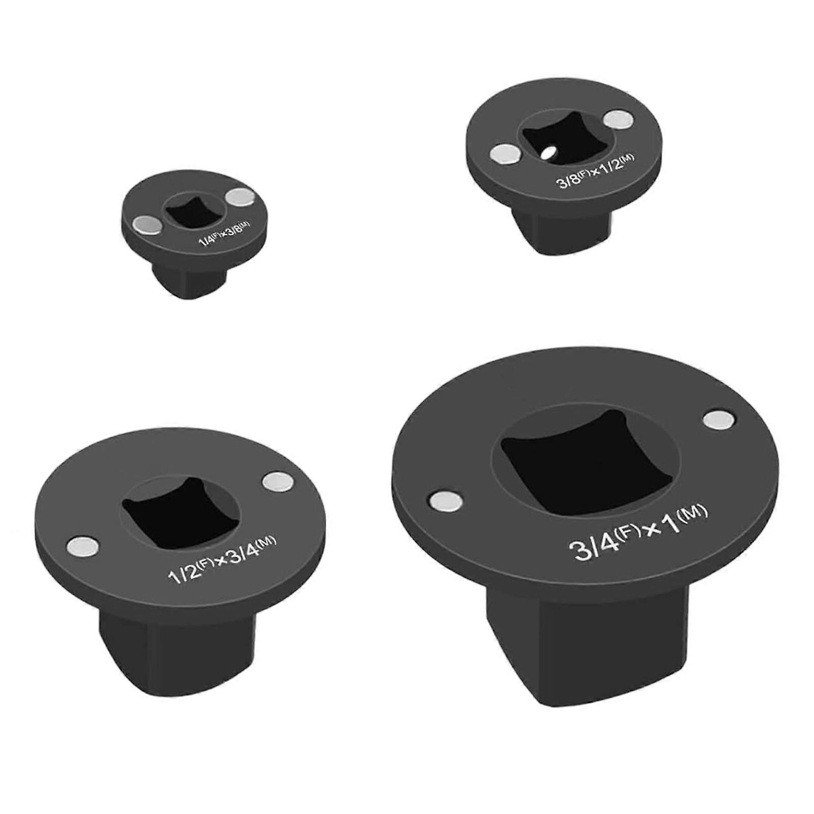 Set of 4 Low Height Socket Adapters Suitable with Various Tool Constructed from Solid Carbon Steel for Enhancing Impact Resistance Multicolor