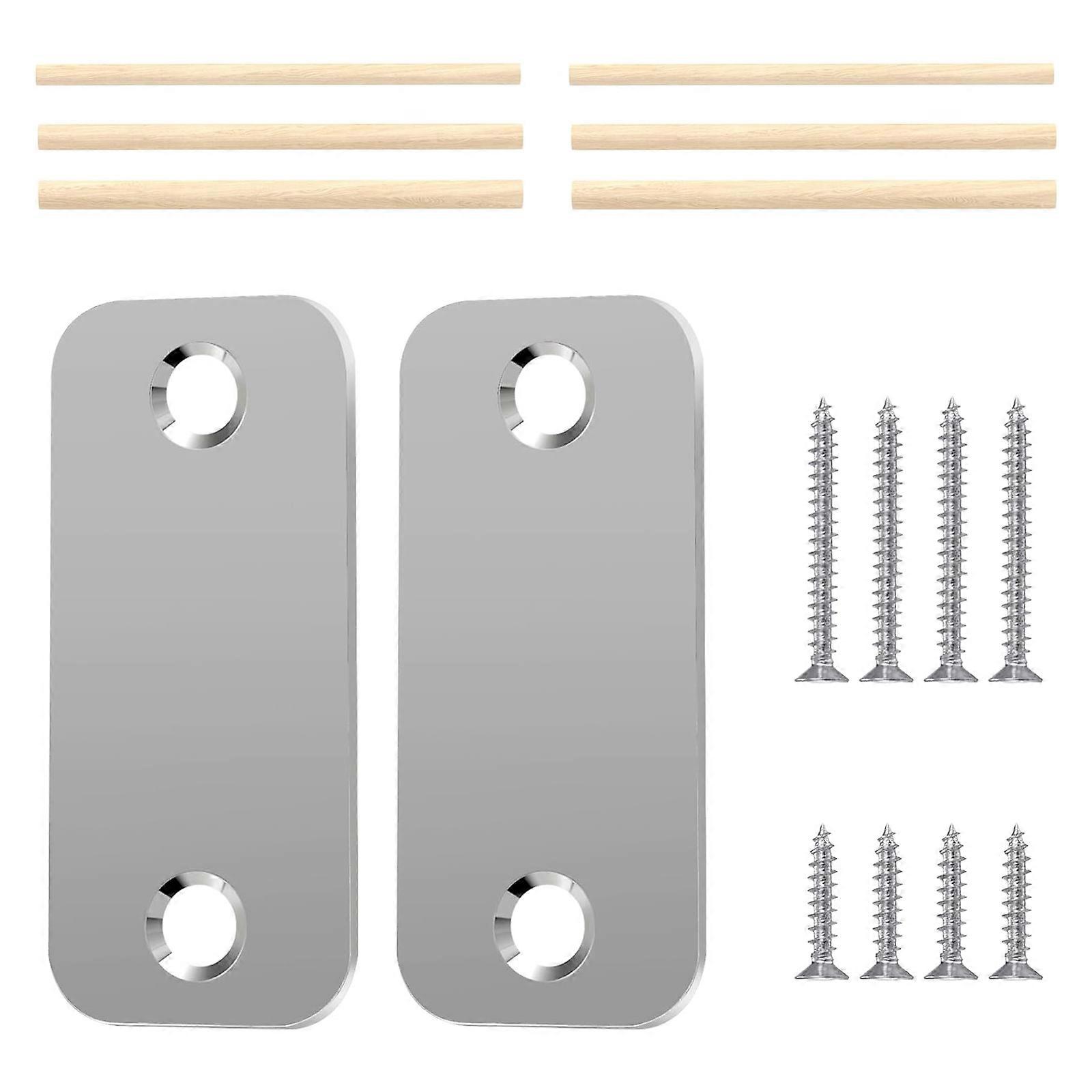 Door Hole Cover Plate with Screws and Wood Dowel Strips Hardware Round Corner Metal Door Strikes Plate Easy to Use Silver