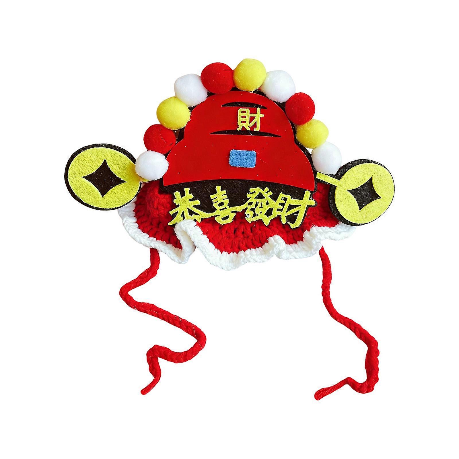 Festival Cats Hat For Chinese NewYear Symbolizing Wealth Good Luck Adjustable Rope Easy Wear Washable Headwear For Pet S