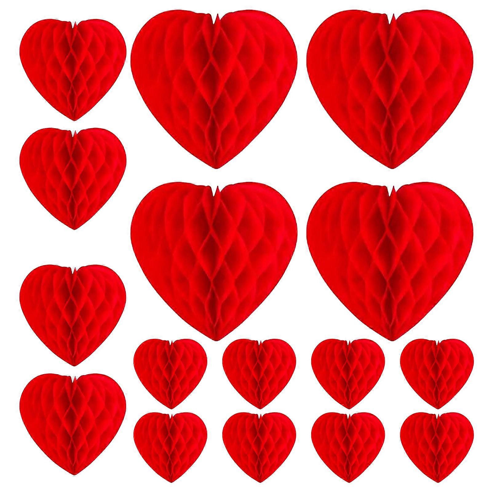 Pack of 16 Heart Shape Honeycomb Decorations Foldable Party Supplies for Various Romance Moment Assembly Required Multicolor