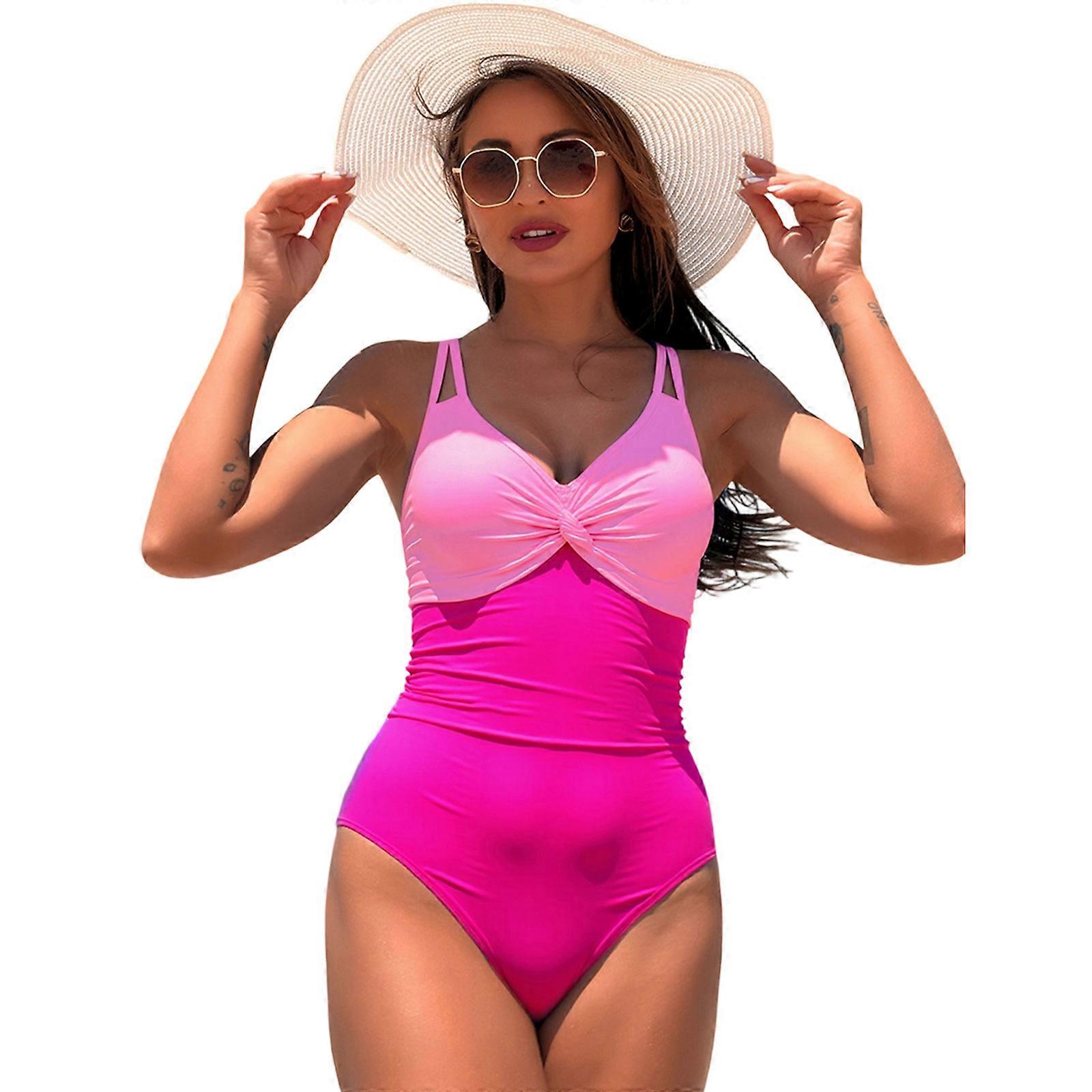 Quick Dry Fabric Beachwear Sun Protections Monokini Swimwear Solid Color for Various Use All Swimming Scenario rose pink XL