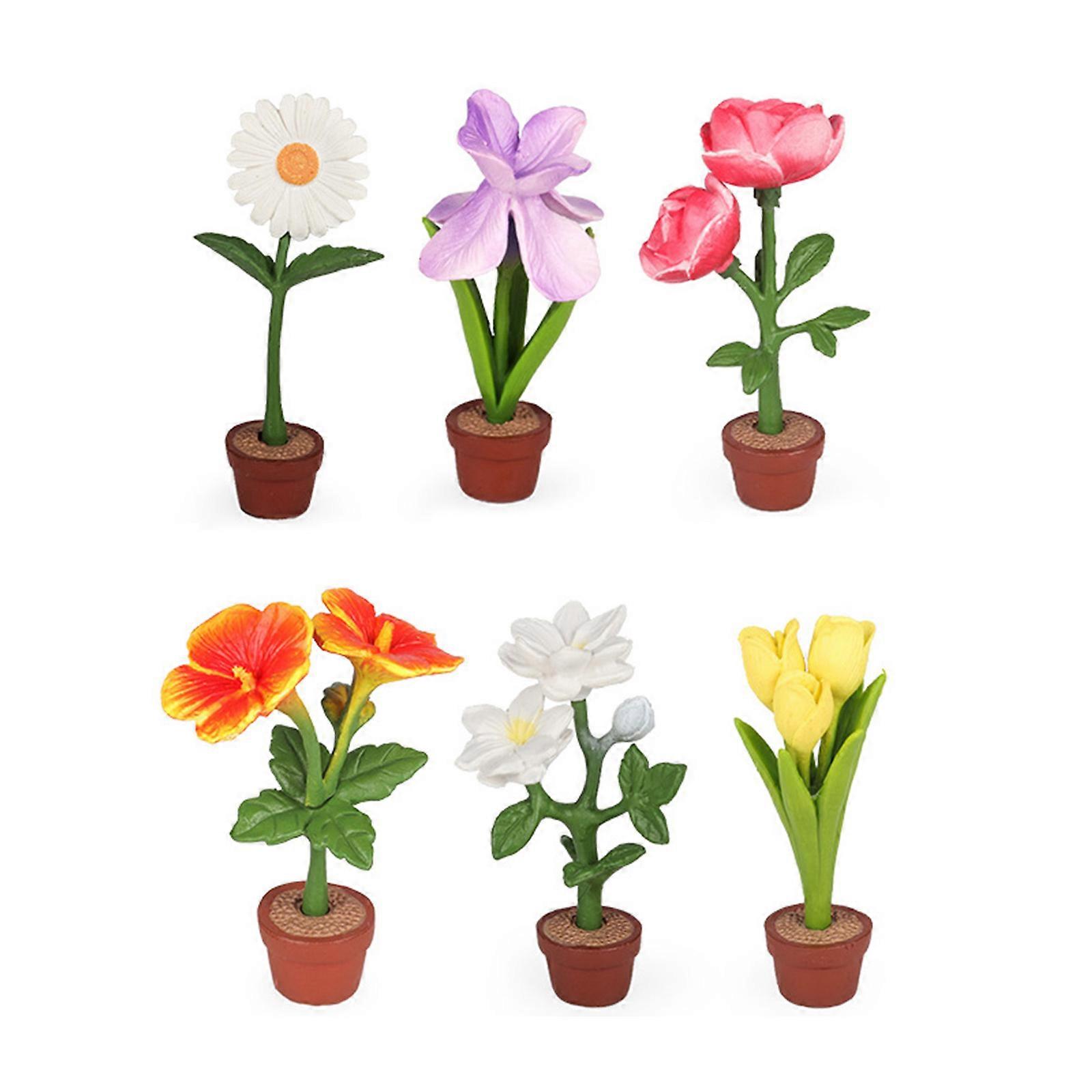 Set Of 6 Realistic Pot Flower Potted Plant With Detailed Design For Various Miniature Scene Setting Landscape Props Multicolor