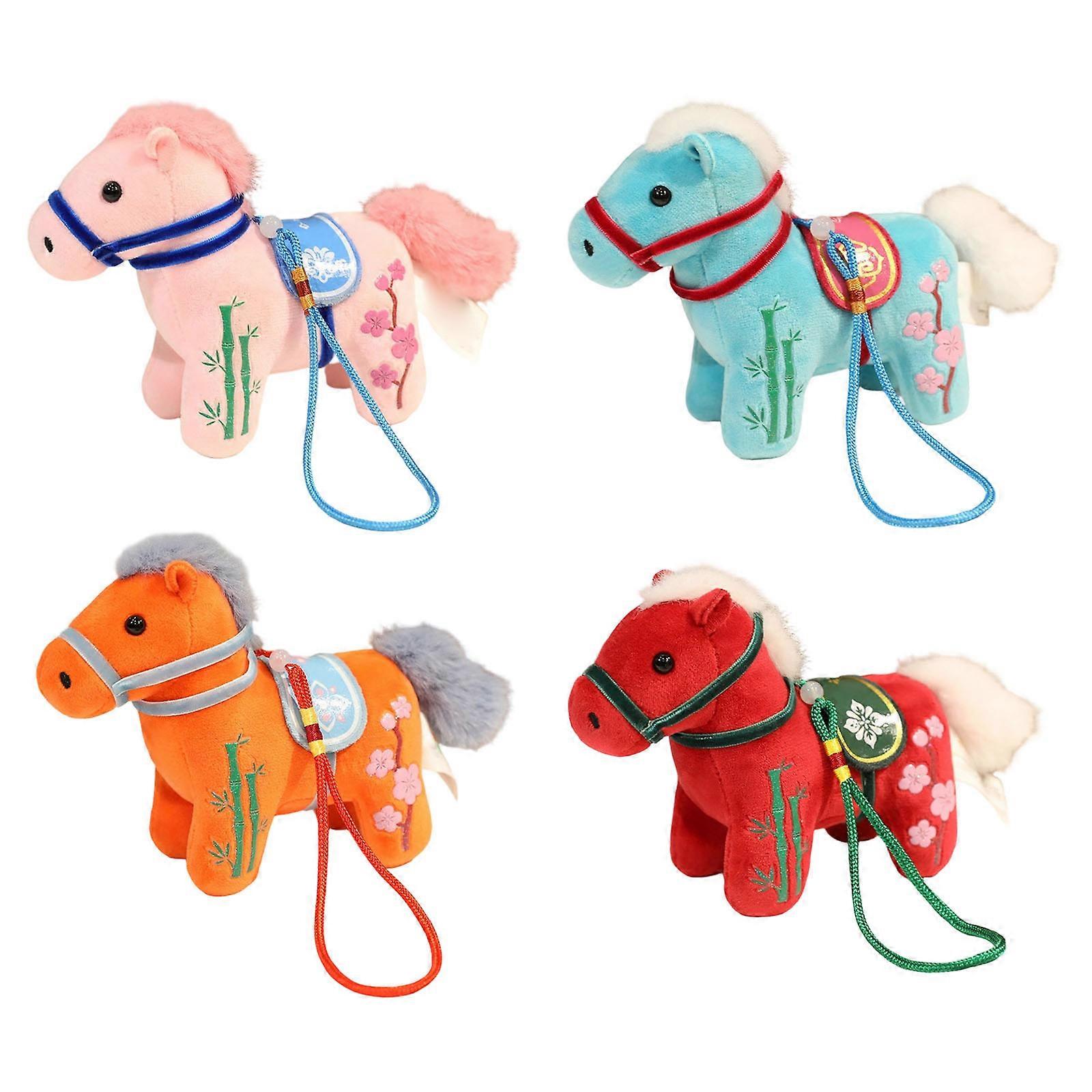 4PCS Creative Chinese Styles Plush Horse Toy Doll Stuffed Animals for Holiday Homes Decoration Kids Adult Festival Gift Multicolor
