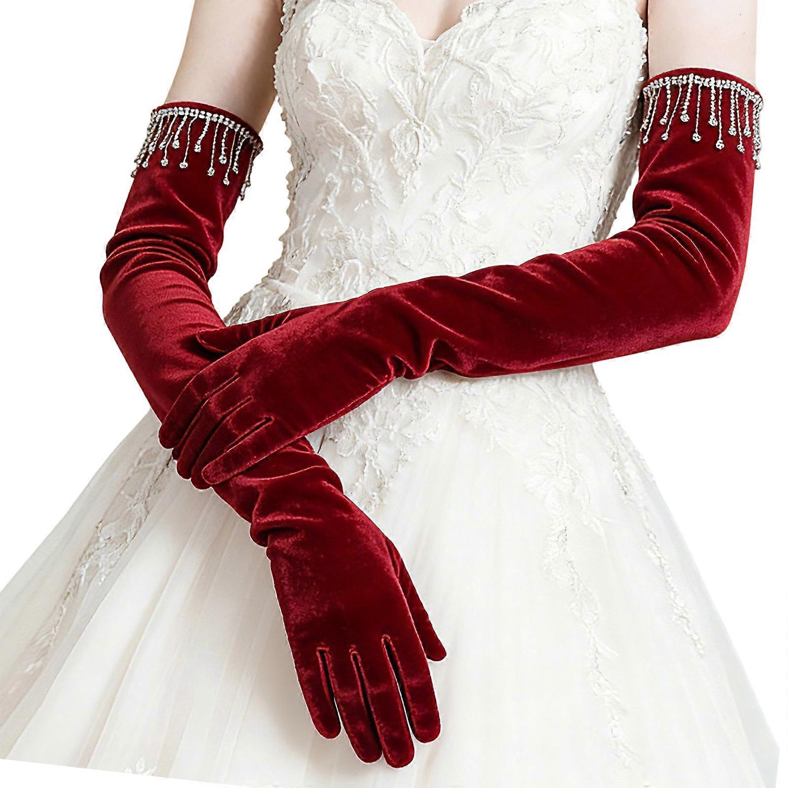 Women's Long Velvet Gloves with Sparkling Rhinestones Accents for Warmth in Prom Evening Event Perfect for Weddings and Parties Comfortable Fit