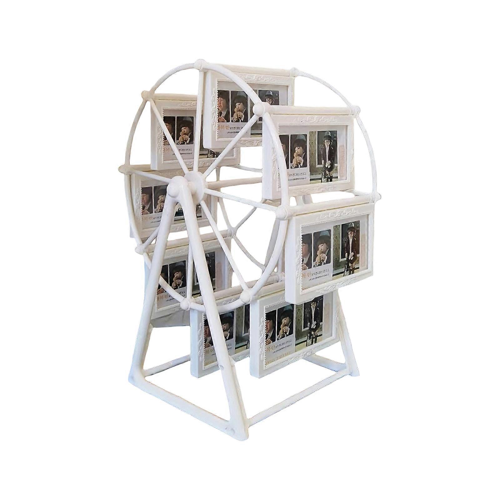 Rotating Ferris Wheel Picture Frame Desktop Photo Display Carousels Picture Frame Holds 8 Small Photo for Home Decors White