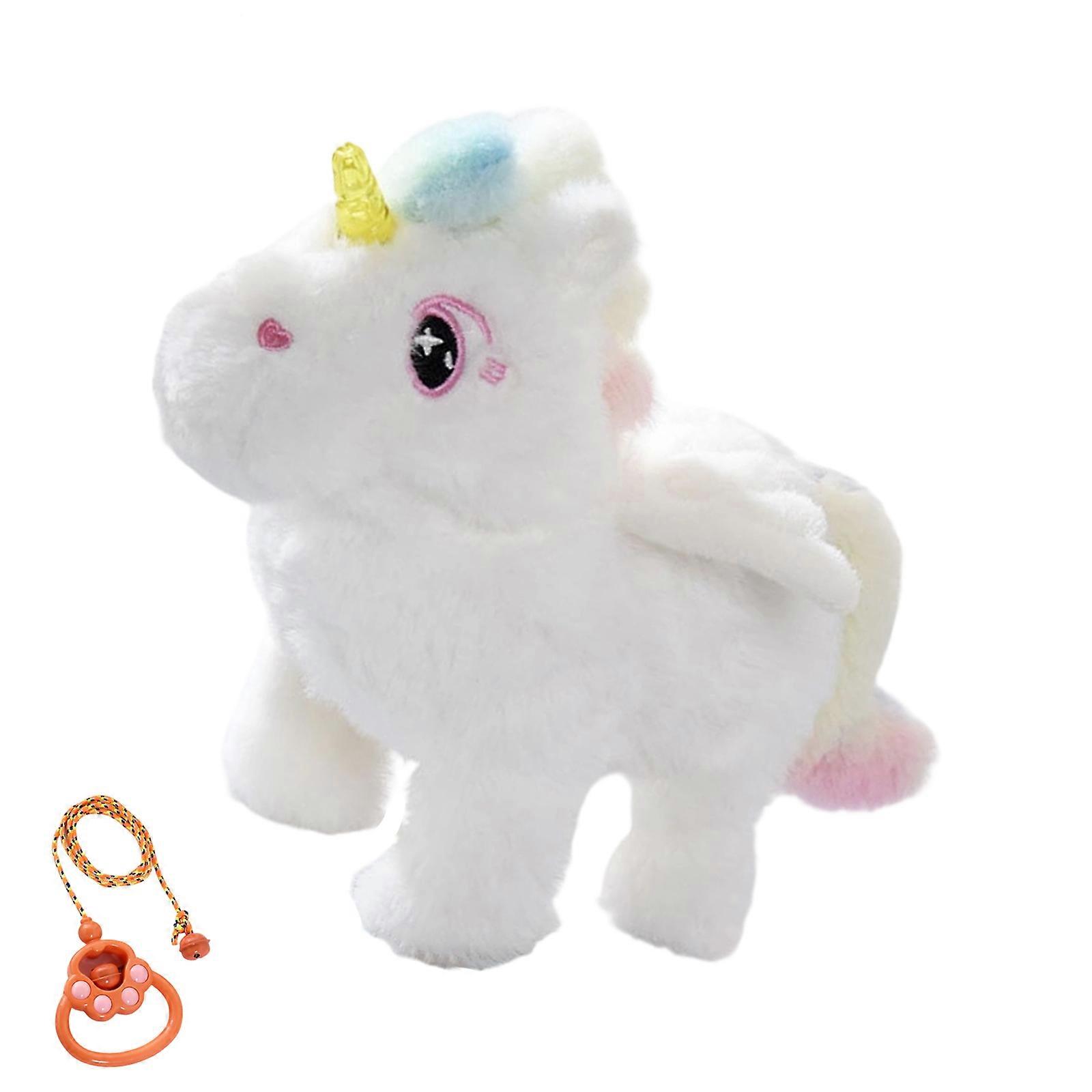 Features: This electric plush unicorns features realistic simulated horse sounds and vibrant colorful lights, creating an immersive play experience that captivates children's imagination with its interactions and enchanting visual effects. Designed with a user friendly remote control for easy operations, soft plush for comfort, and a random color leash for added surprise, this toy ensures safe and engaging fun while highlighting its key attributes like the simulated horse sound and colorful light features. Ideal for toddler and preschoolers, this interactive remote control animal toy fosters imaginative play and emotional connection, making it perfect for children seeking pretend pet companionship. Suitable for versatile indoor and outdoor settings such as living rooms, gardens, birthday parties, or bedtime, this electric plush unicorns enhances family bonding moments during playtimes activity. Crafted from child safe materials including soft plush and electronic components, this remote control toy offer endless entertainment while prioritizing safety. Specifications: Component: Plush + Electronic Components Color:White,Pink,colorful Size:Approx.19cm/7.48''x24cm/9.44'' Power Supply:2Pcs AA Battery (not included) Package Includes: 1Piece Electric unicorns Toy 1Piece Leash (random color) 1Piece Instruction Manual (Chinese) note: Please allow 1mm errors due to manual measurement. Due to the differences between different monitors, the picture may not reflect the actual color of the item.