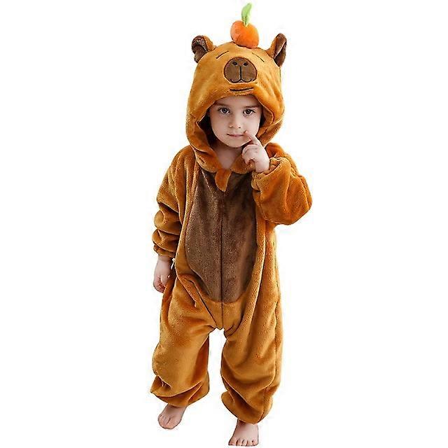 MICHLEY Halloween Cartoon Toddler Infant Flannel Baby Rompers Capybara Costume Hooded Overall Bodysuits Jumpsuit for Boy Girl