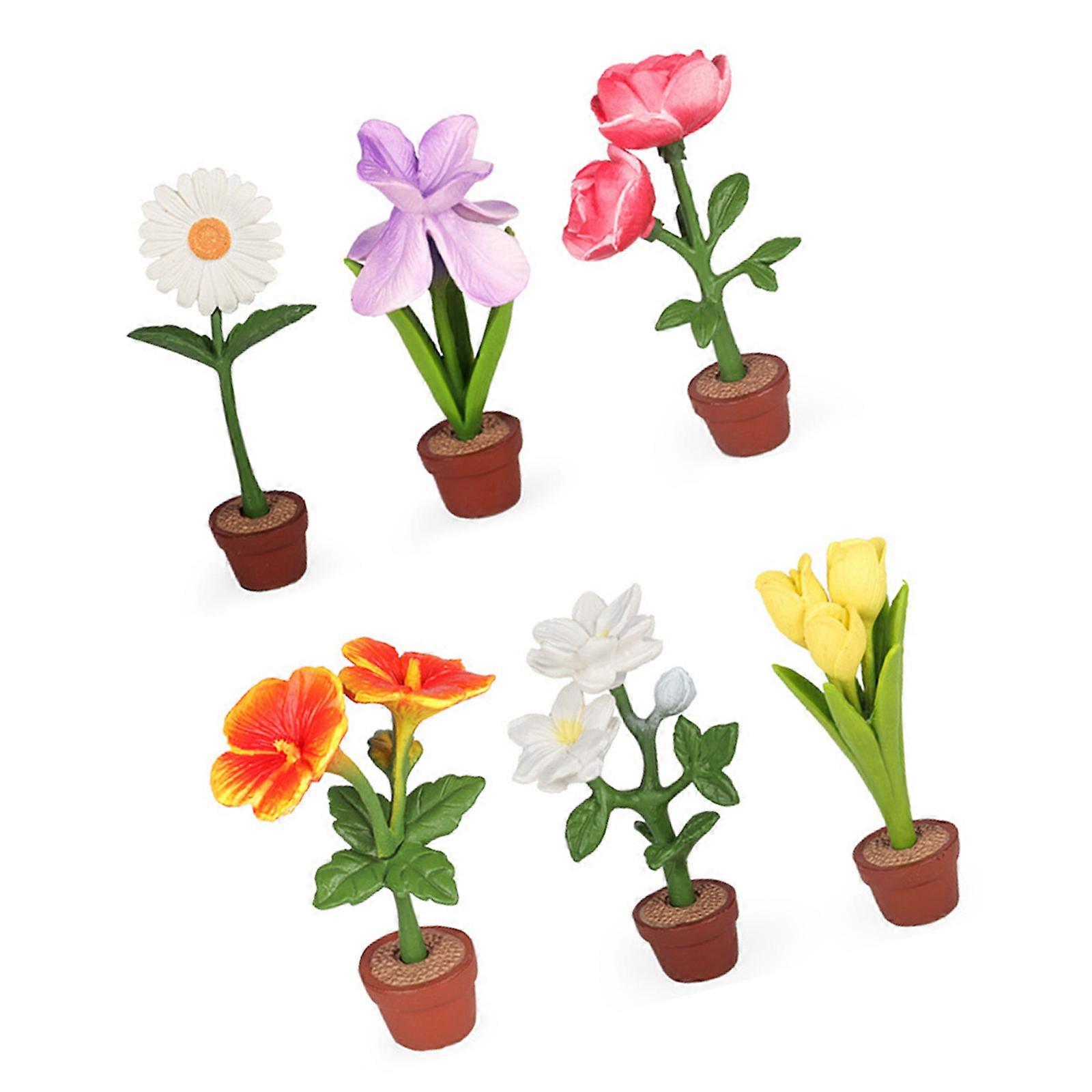 Pack Of 6 Artificial Potted Flower Model Figure Scene Display Accessories For Microlandscape And Kids Collections Multicolor