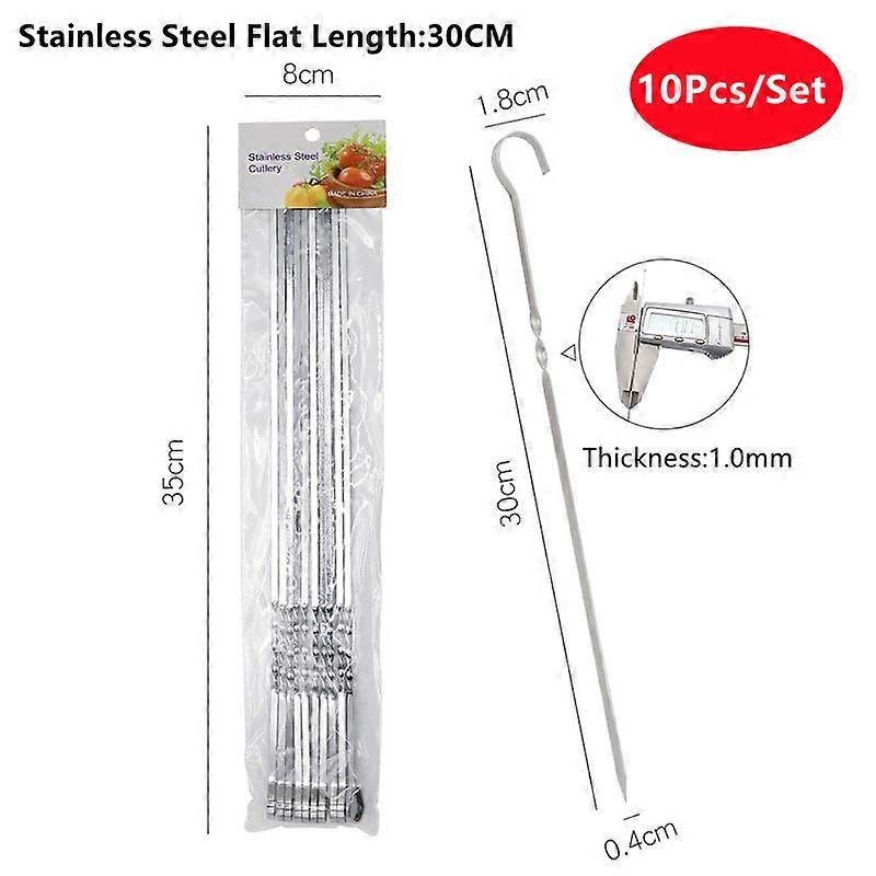 Stainless Steel Barbecue Skewers Stick Set, Reusable Kebab Sticks, Flat Metal, BBQ Tool, Meat, Shrimp, Chicken, 10 Pcs