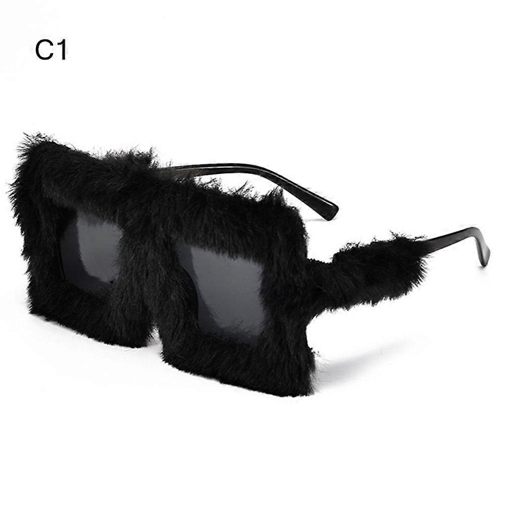 Oversized Plush Sunglasses Style Soft Fluffy Square Frame Sun Glasses Party Christmas Halloween Cosplay Winter Shades for Women