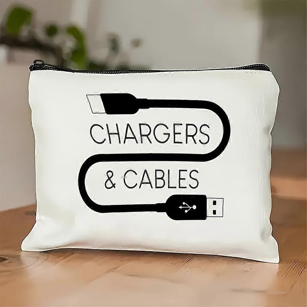 New Canvas Charger Storage Pouch Print Design Zipper Closure Cable Organizer Bag Large Capacity Electronics Bag Travel Use
