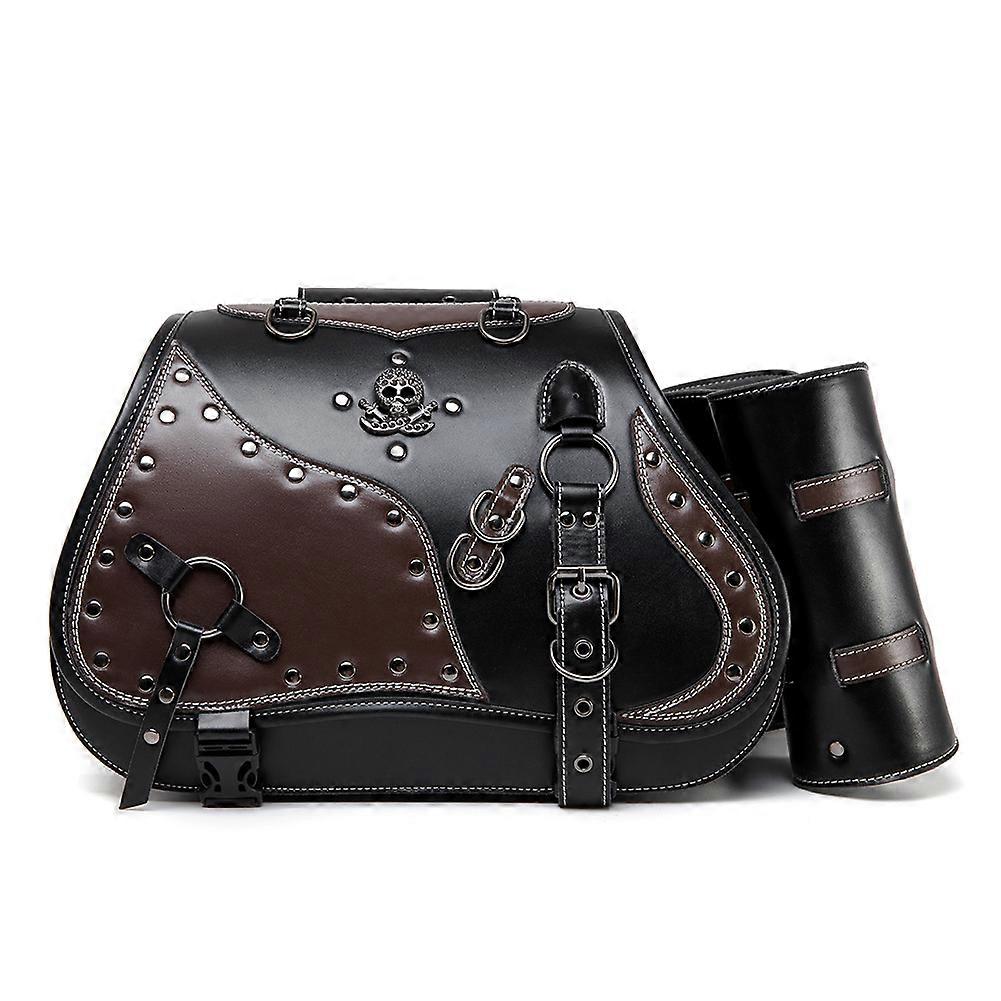 Sacoches de moto r��tro universelles, pour Harley XL883 Honda Yamaha Suzuki, en cuir PU avec tasse, sac d'��quipement lat��ral