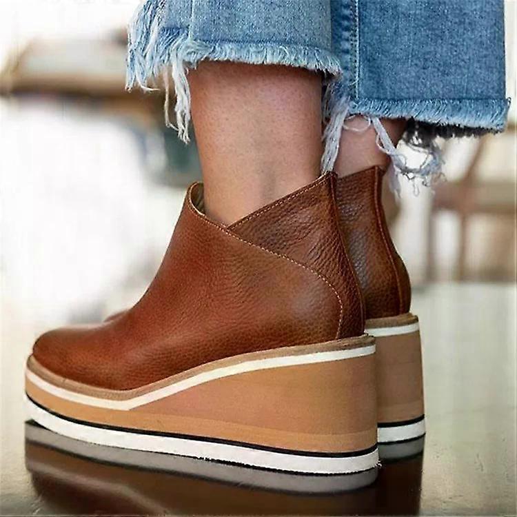 Autumn Ankle Boots Women Fashion Leather Wedge Heel Platform Women's Shoes Short Boots High Heels Boots Botas De Mujer