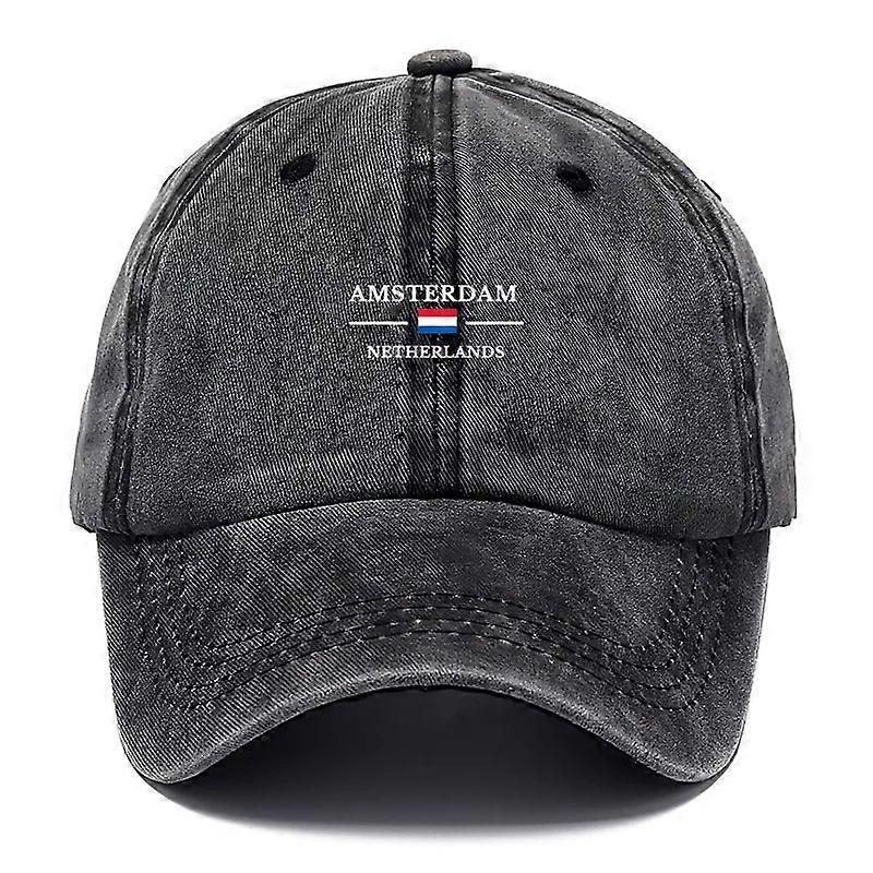 Amsterdam Washed Cotton Baseball Cap Vintage Distressed Travel Souvenir Adjustable Snapback Hat Unisex Netherlands Tourist Gift