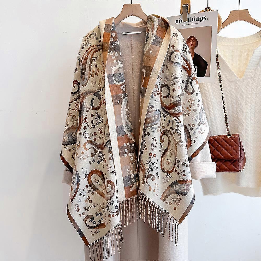 Mode nouvelle hiver ��charpe enveloppes pour femmes 2026 ethnique color�� cajou imprim�� chaud chale enveloppement Faux cachemire foulards couv